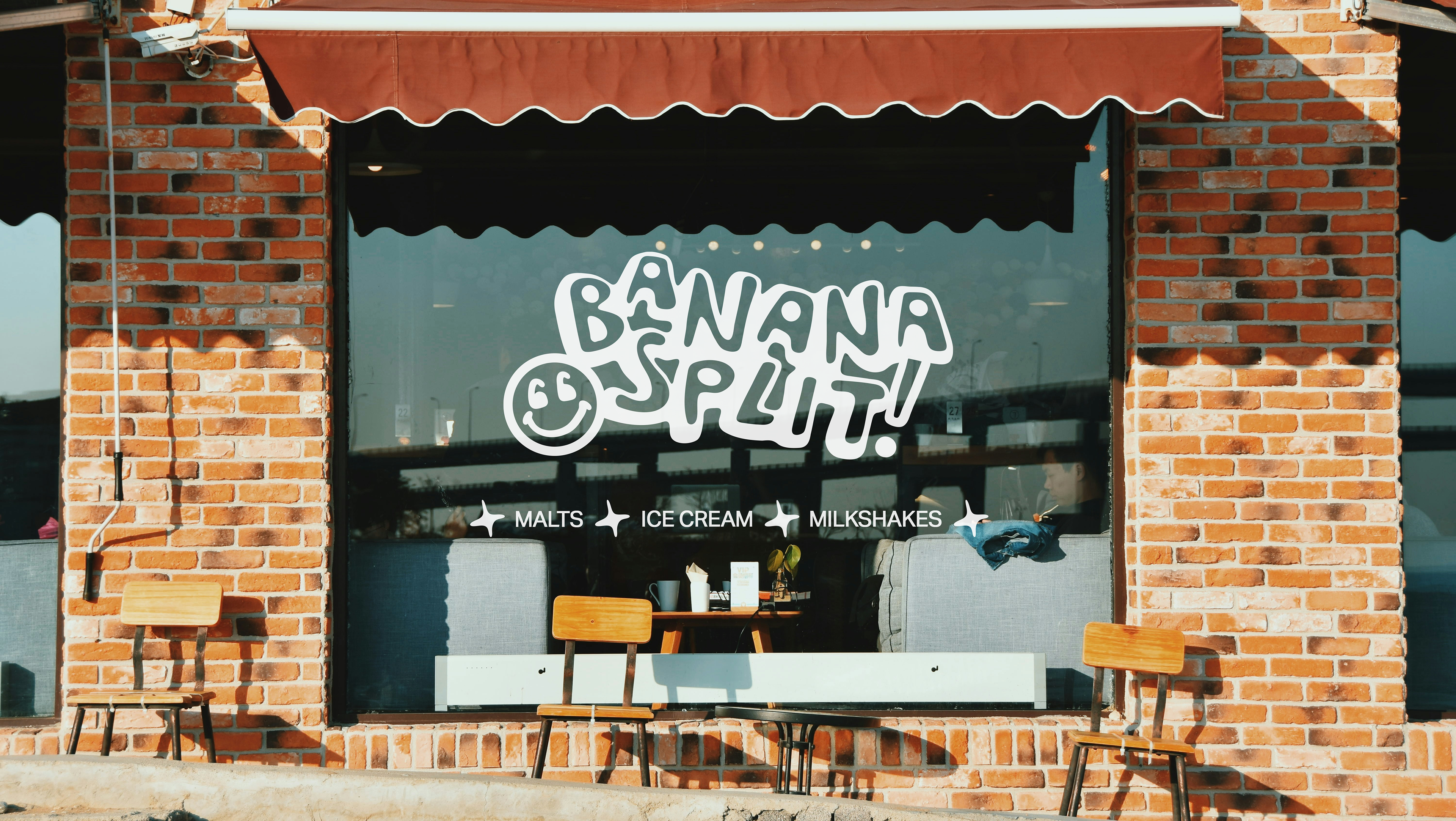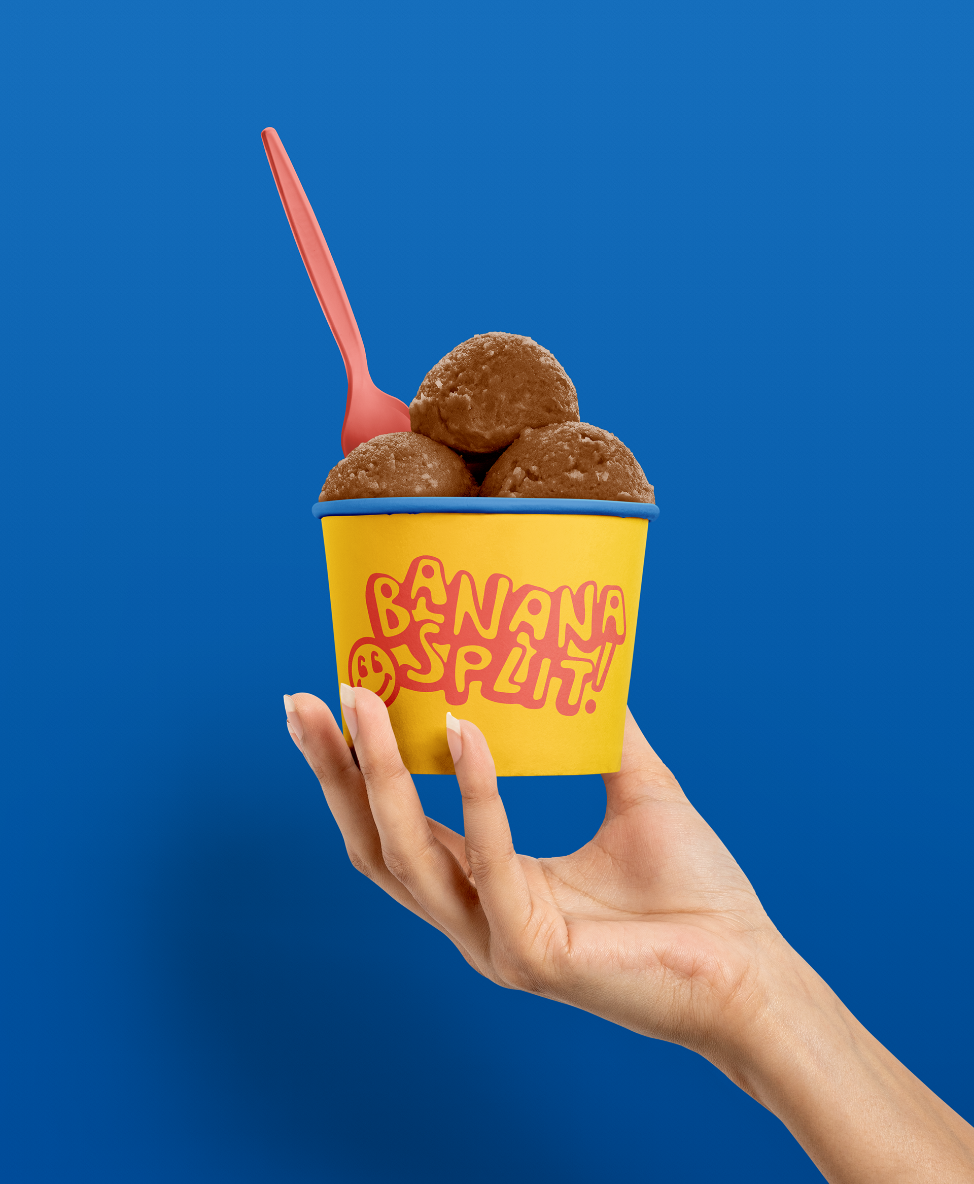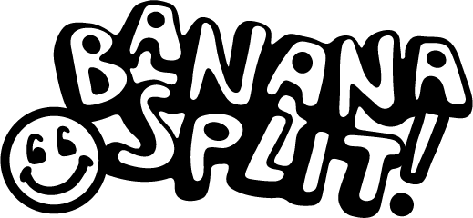 Logo + branding for a fictional ice cream shop called "Banana Split." The desired look is colorful, retro, and illustrated.